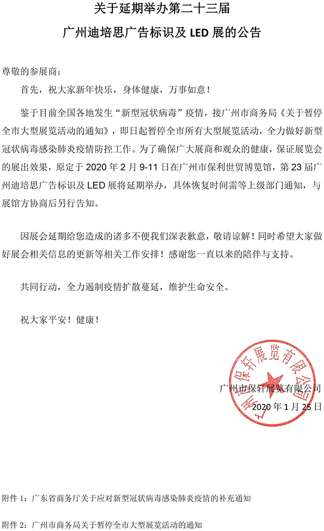关于延期举办第23届广州迪培思广告展的公告.pdf